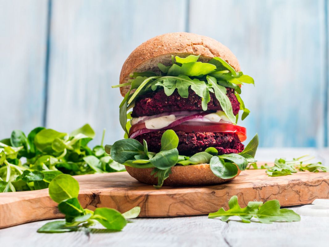 3. Salade d'épinards et burger végétarien