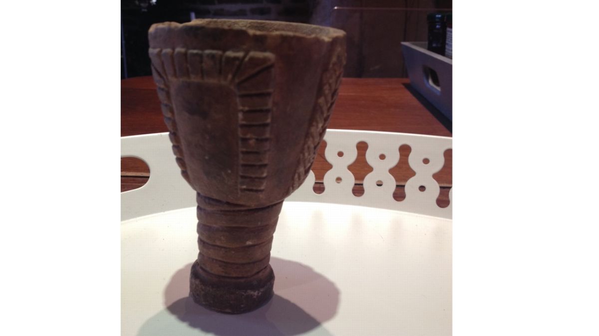 La coupe de Magali est effectivement en terre cuite. Sa patine brun ocre indique un long enfouissement. Avec sa forme évasée reposant sur un pied circulaire orné de cinq anneaux, il s'agit d'un calice. Ce matériau, riche en décor incisé, présente des motifs végétaux qui évoquent les productions de la période romano-africaine, entre le Ier et le IVe siècle de notre ère.